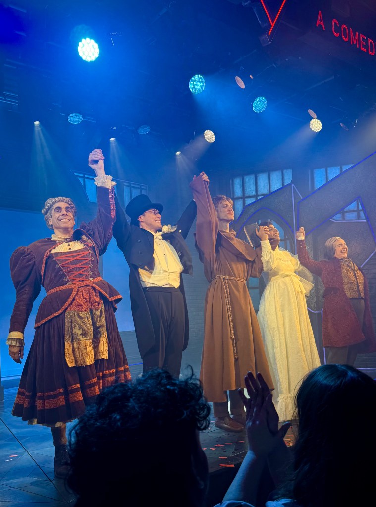 A small cast of five, with only one actor playing a single role. The remaining four switch hilariously between multiple characters and costumes, with flawless over-the-top accents and one of the quickest quick changes I have ever witnessed. As someone who thoroughly enjoyed this year’s hit horror film Nosferatu, it was interesting to see Stoker’s story interpreted in such a different way, fitting seamlessly into the framework of a spoofy, flamboyant comedy.